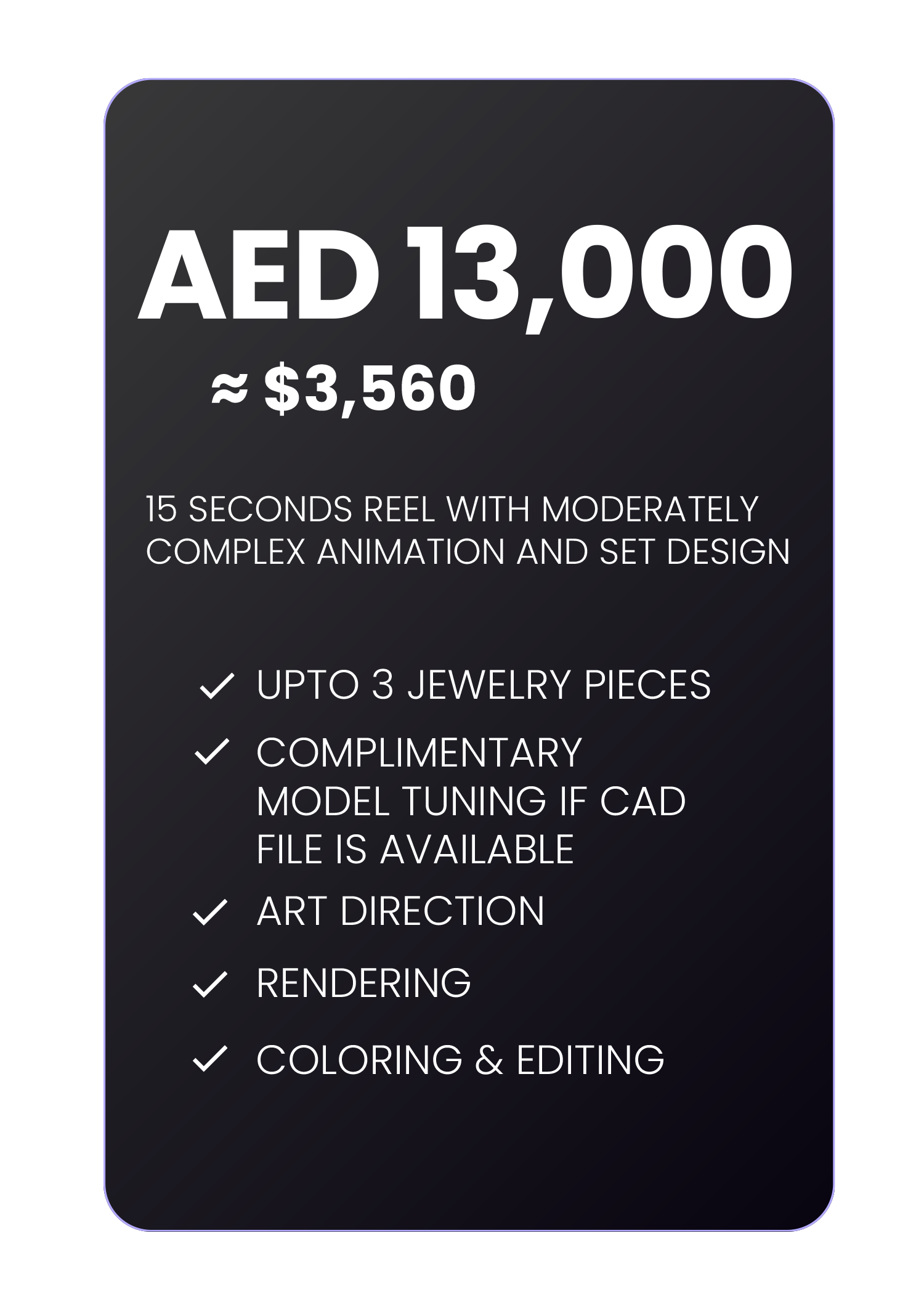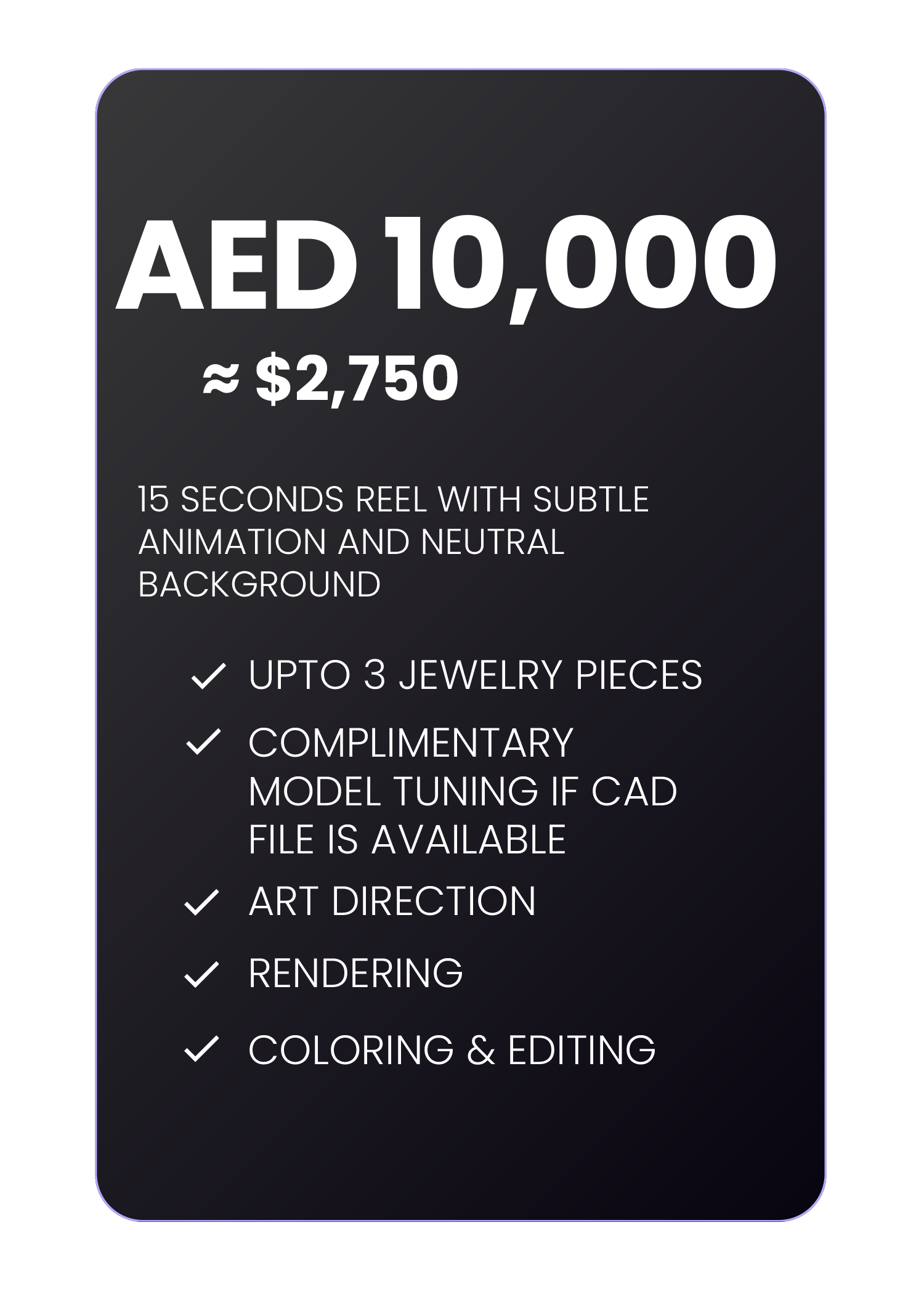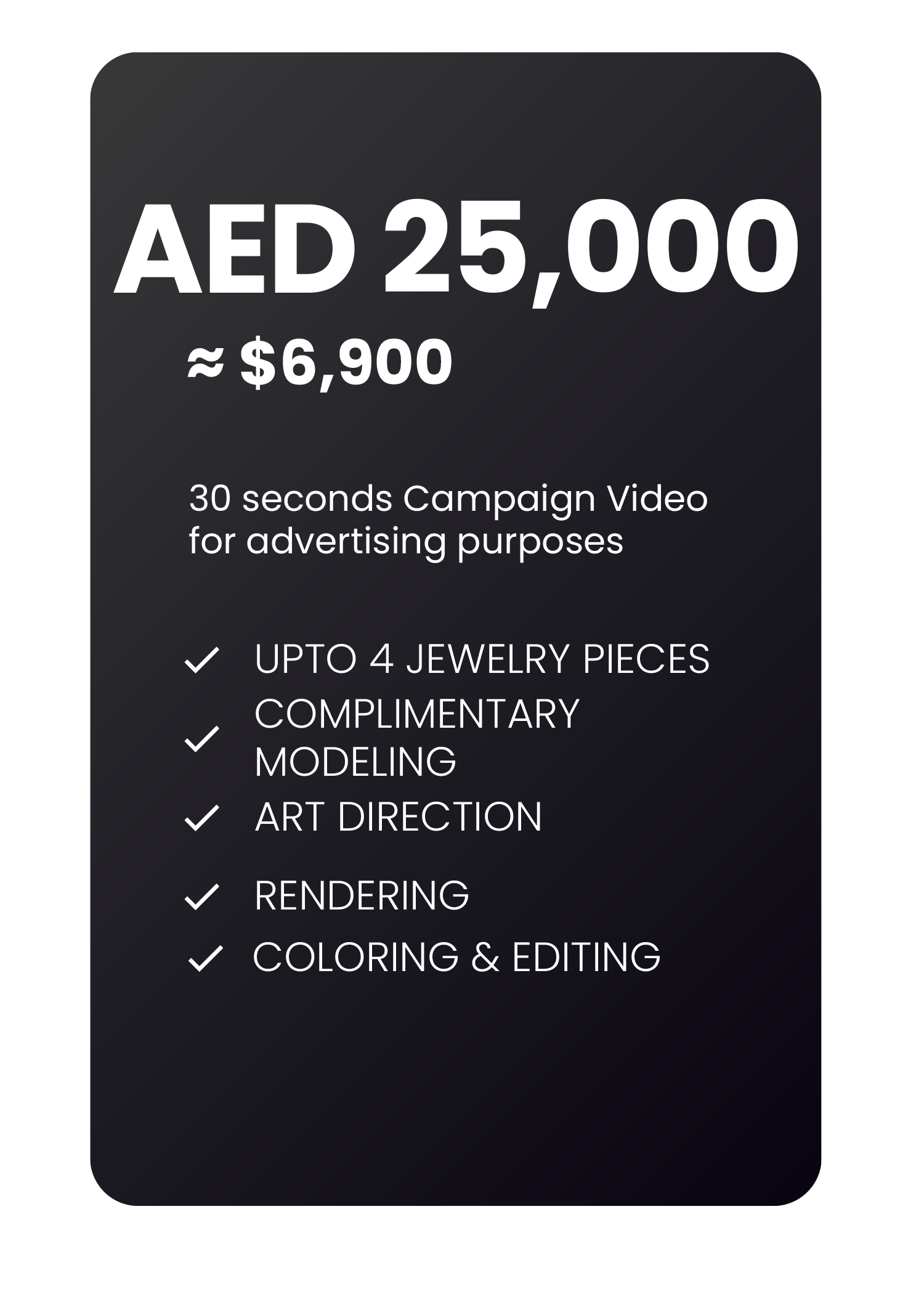 Experience the power of storytelling with our Campaign Ads, where we transform your product campaigns into cinematic masterpieces. Our team of experts crafts complex reels that showcase your jewelry in grandeur, weaving together intricate animations, effects, and dynamic elements to create unforgettable campaign videos. These videos are designed to captivate wider audiences and serve as broader advertising material, making them the perfect centerpiece for your marketing campaigns.